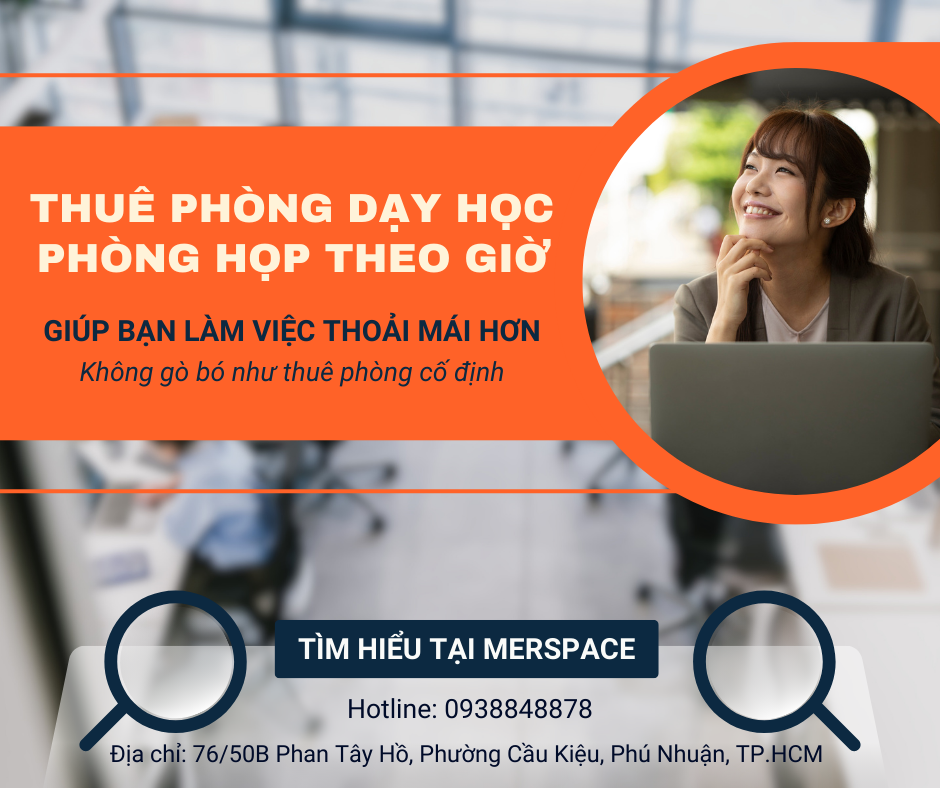 Kết luận: Thuê phòng họp, phòng dạy học theo giờ giá rẻ chính là giải pháp thoải mái, linh hoạt và tiết kiệm cho bạn. So với văn phòng truyền thống hay phòng học cố định, mô hình này mang lại sự tự do về thời gian, không gian thoải mái, tính linh hoạt cao đi kèm với đó là tiện ích đầy đủ mà chi phí lại vô cùng tối ưu. Đó là lý do ngày càng nhiều doanh nghiệp, giảng viên và nhóm làm việc tìm đến không gian tại Merspace để nâng cao hiệu suất và trải nghiệm làm việc.
