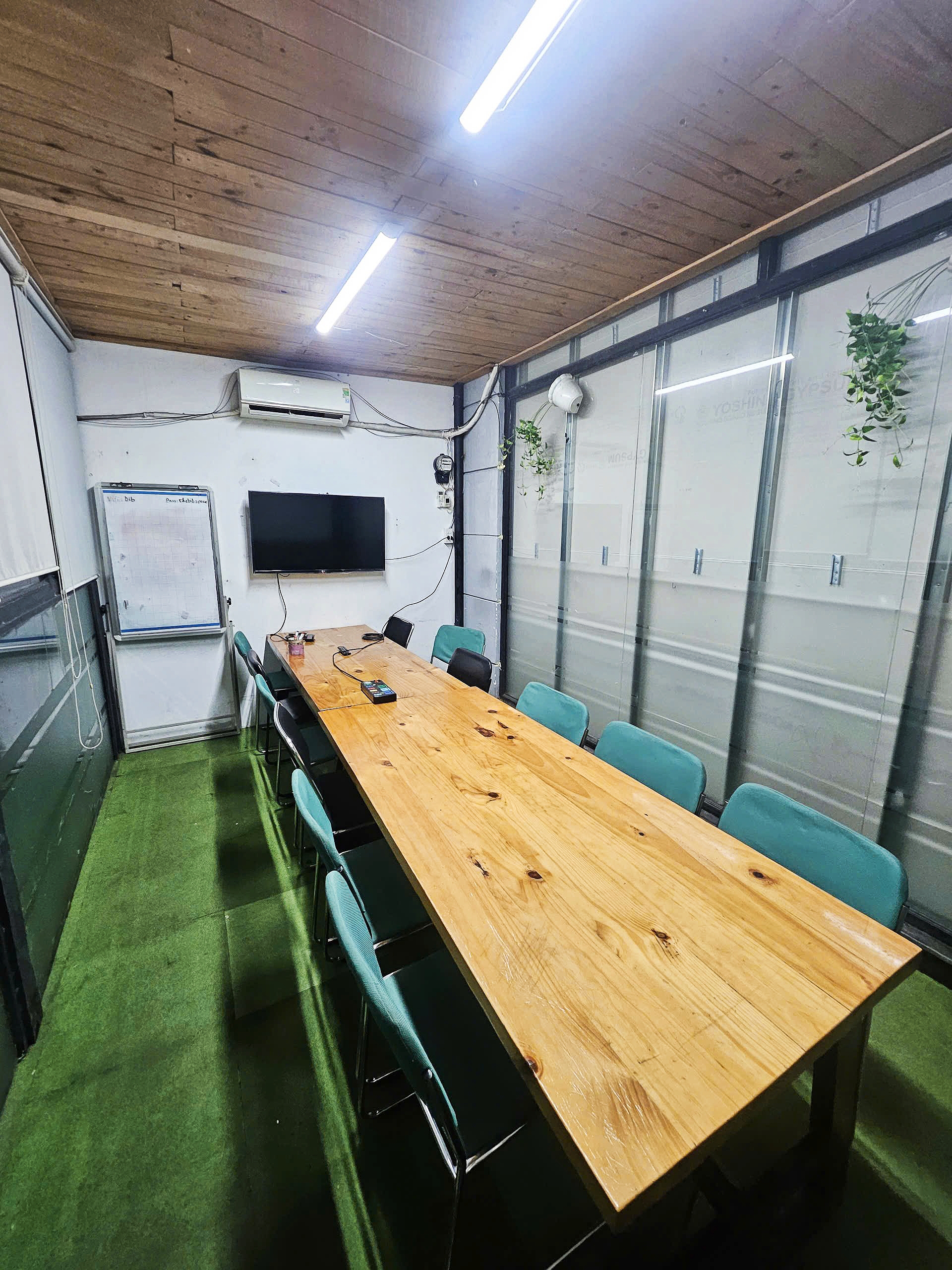 Phòng họp nhỏ được thiết kế riêng tư, tạo cảm giác chuyên nghiệp cho cả nhà tuyển dụng và ứng viên. Thích hợp cho các buổi phỏng vấn cá nhân hoặc gặp gỡ đối tác.